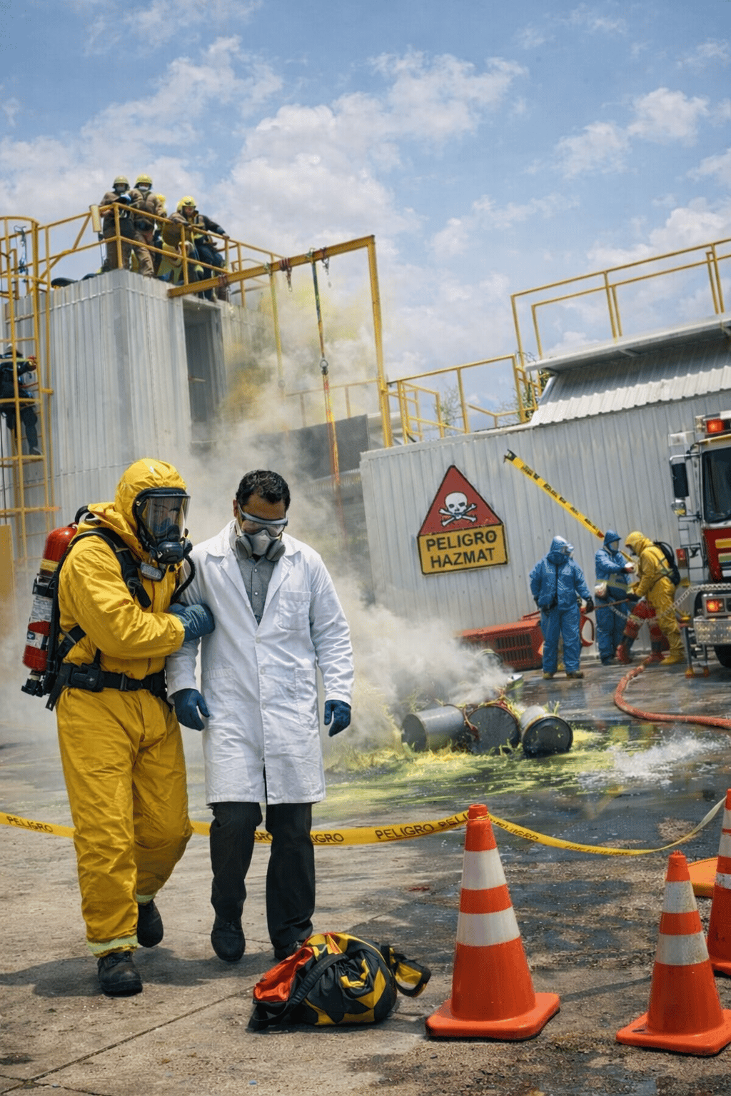 La totalidad de la fábrica, así como nuestro simulador de almacén de sustancias químicas son propicios como punto de partida para la prevención de emergencias Hazmat, así como para la práctica de emergencias. Integrando la seguridad de las instalaciones, la clasificación de los peligros de las sustancias, equipo de protección personal Hazmat, Comando de incidentes y todo el teatro de operaciones.