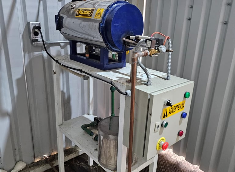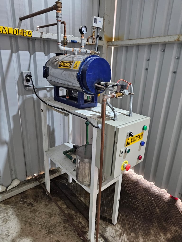 Espacio para entrenar la operación segura de una caldera industrial real, en dimensiones didácticas donde el trabajador aprenderá a clasificar, operar todos los elementos y dispositivos operativos y de seguridad.